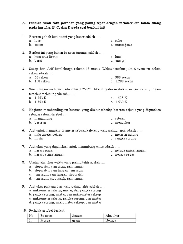 1 Berikut Ini Yg Tidak Termasuk Satuan Dalam Si Adalah A Depa B Sekonc Kendela Brainly Co Id