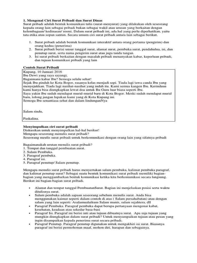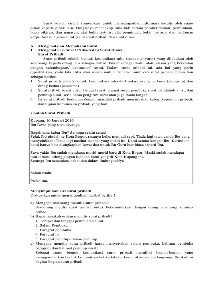 Menyimpulkan Ciri Surat Pribadi Diskusikan Untuk Menyimpulkan Hal Hal Berikut Operator Sekolah