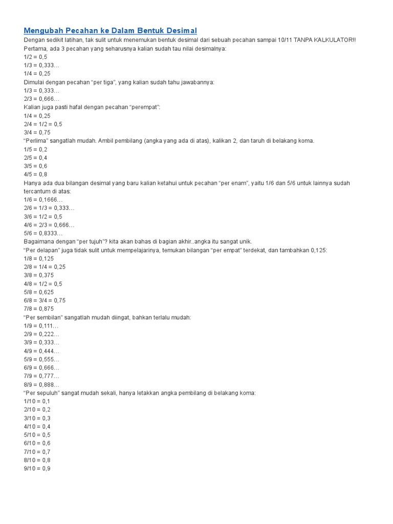 Rangkuman Dan Soal Cara Mengubah Pecahan Ke Desimal Belajar Dari Rumah Sd Kelas 4 6 Semua Halaman Bobo