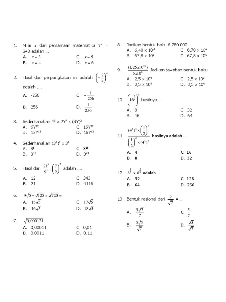 Contoh Soal Untuk Cpns Doc 1 Nilai Dari 0 5 0 6 X 2 Adalah 2 397 X 397 104 X 104 2 X 397 X 104 3 62n X N 3125 Nilai Dari N Pada Perkalian Tersebut Course Hero