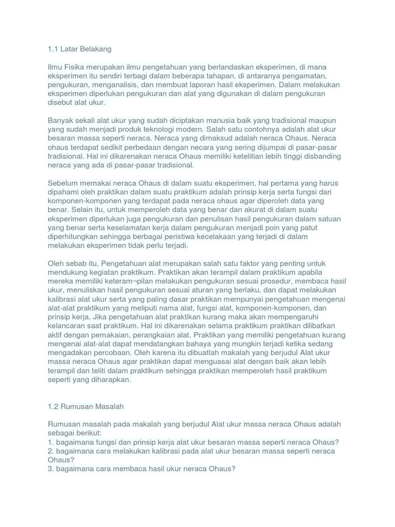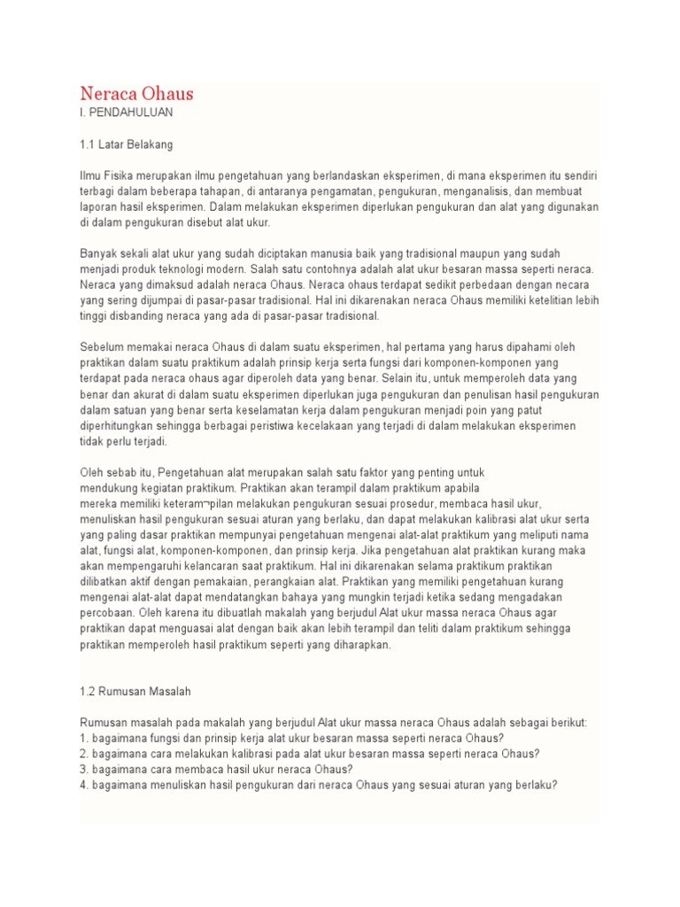 88335011 Neraca Ohaus Doc Neraca Ohaus I Pendahuluan 1 1 Latar Belakang Ilmu Fisika Merupakan Ilmu Pengetahuan Yang Berlandaskan Eksperimen Di Mana Course Hero