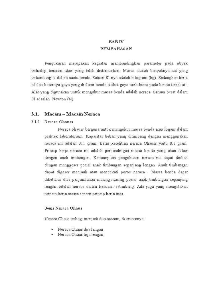 88335011 Neraca Ohaus Doc Neraca Ohaus I Pendahuluan 1 1 Latar Belakang Ilmu Fisika Merupakan Ilmu Pengetahuan Yang Berlandaskan Eksperimen Di Mana Course Hero