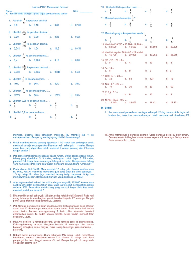 Pecahan Senilai1 3 4 2 Pecahan Biasa Desimal Campuran Persen30 25 3 2 Km Brainly Co Id