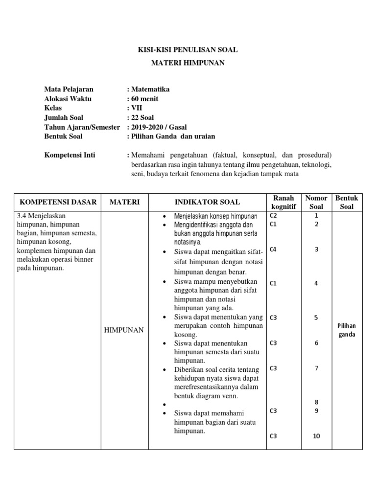 Kumpulan Contoh Soal Contoh Soal Himpunan Bagian Dan Himpunan Kuasa