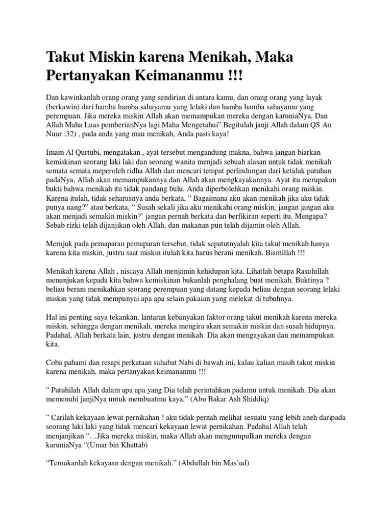 Jangan takut miskin karena allah maha kaya. Tips untuk yang kena phk atau bangkrut usaha. Karunia allah itu ada di mana mana bisa didapatkan dengan berbagai cara. Takut miskin akan menjadi penghalang bagi seseorang meraih sukses dengan mudah.