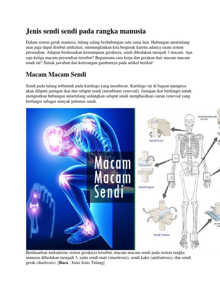 Macam Macam Sendi Di Dalam Tubuh Manusia Dan Contohnya