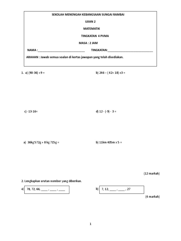 Soalan Matematik F4 1 Descargar
