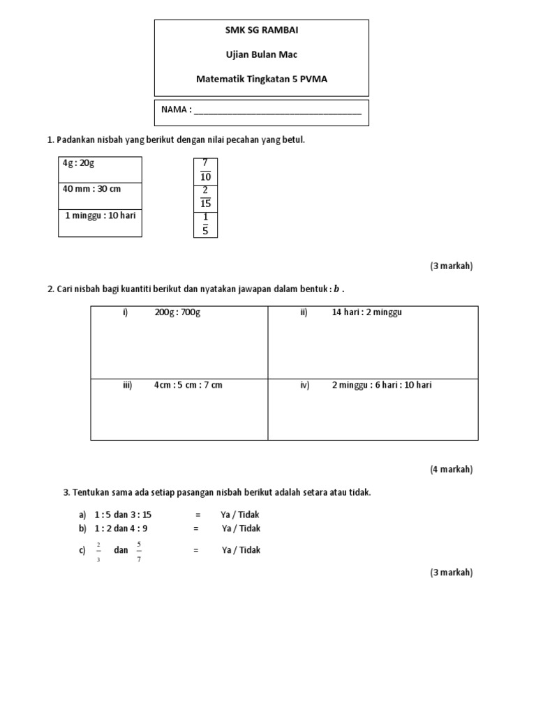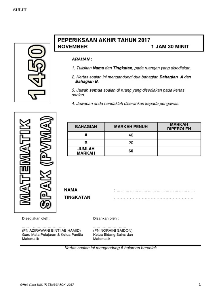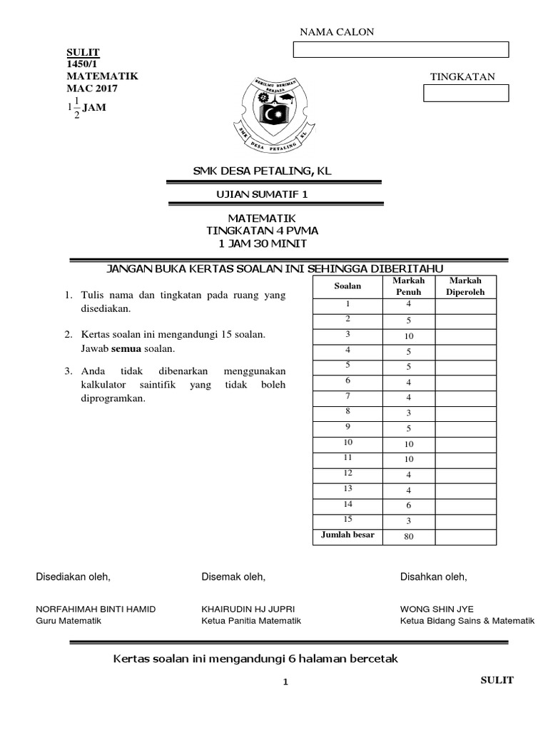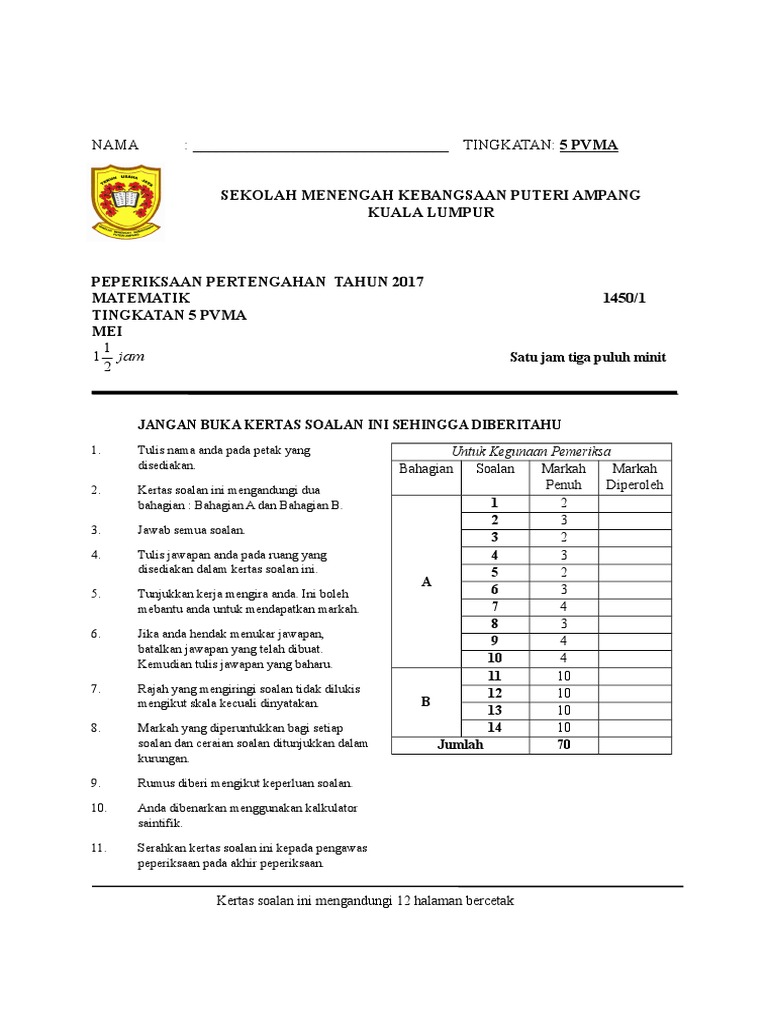 Ujian 1 Matematik Pvma