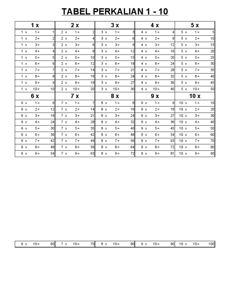 Kumpulan Tabel Perkalian 1 Sampai 100 Dan 1 Sampai 200 Lengkap Anto Tunggal