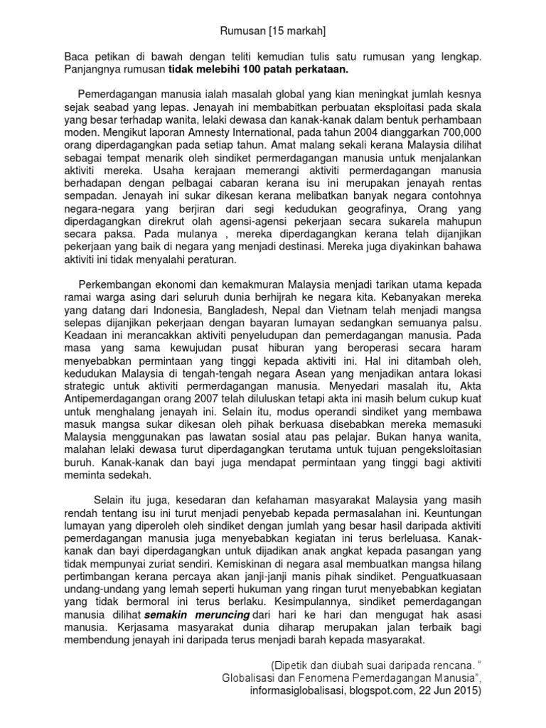 Contoh Soalan Rumusan Bahasa Melayu Pt3 Selangor A