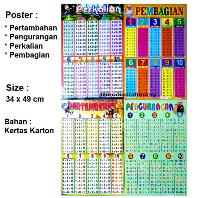 Penambahan Pengurangan Perkalian Dan Stiker Dinding Tabel Divisi Sekolah Dasar Matematika Perhitungan Rumus Formula Anak Unit Konversi Shopee Indonesia