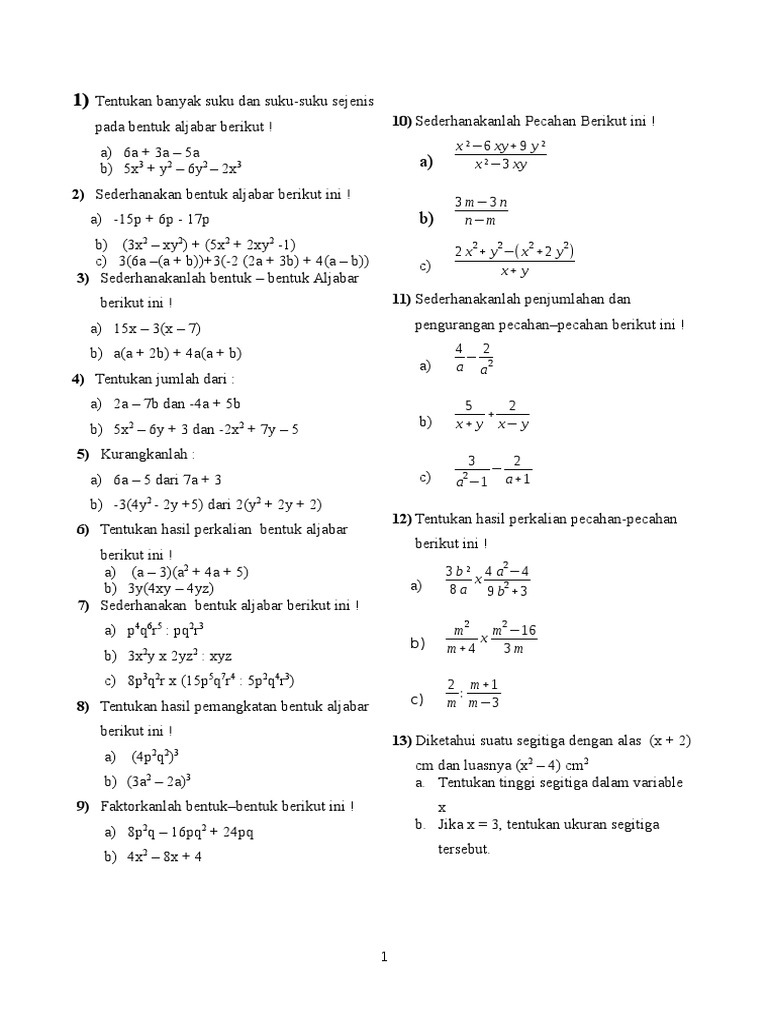 3 Operasi Hitung Bentuk Aljabar Pdf Free Download