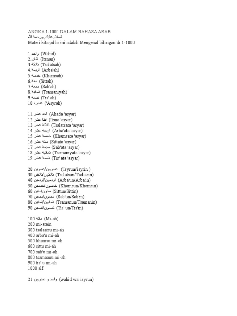 Angka 1 1000 Dalam Bahasa Arab