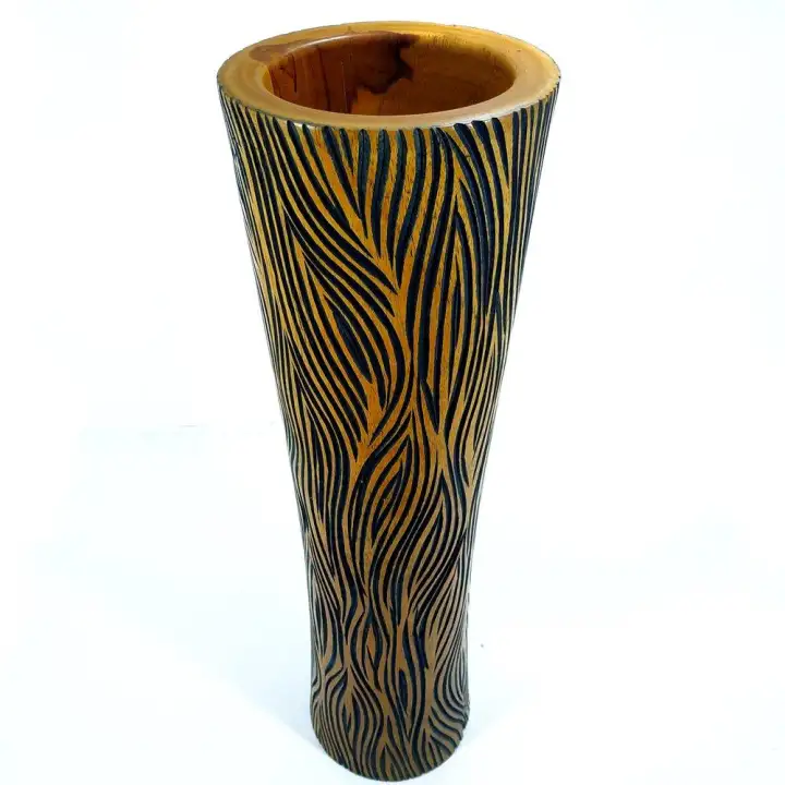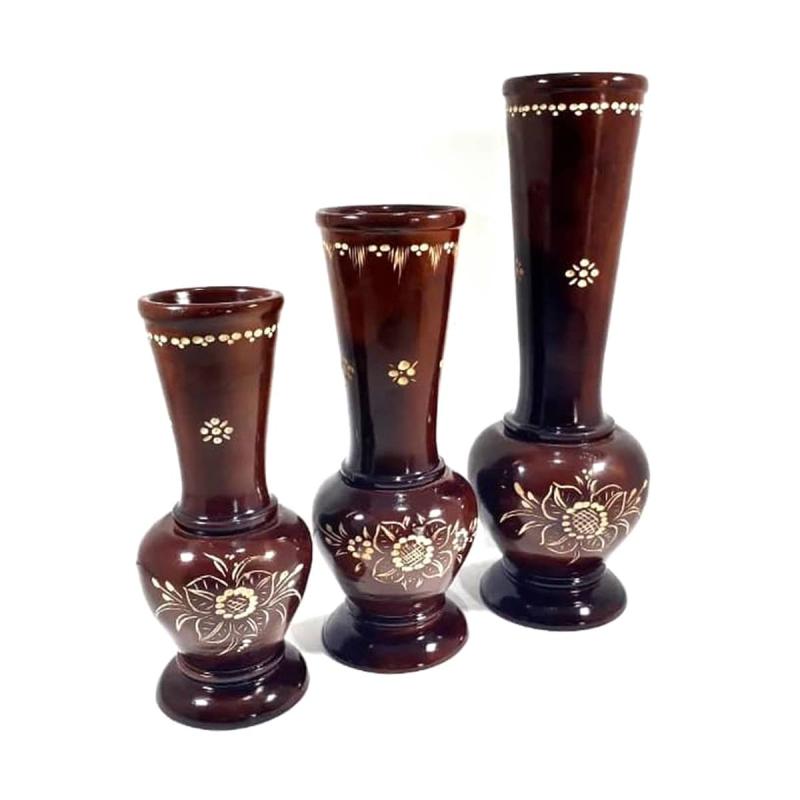 Guci Vas Bunga Kayu Jati Ukir Ukiran Kerajinan Unik Antik Hiasan Dekor Lazada Indonesia