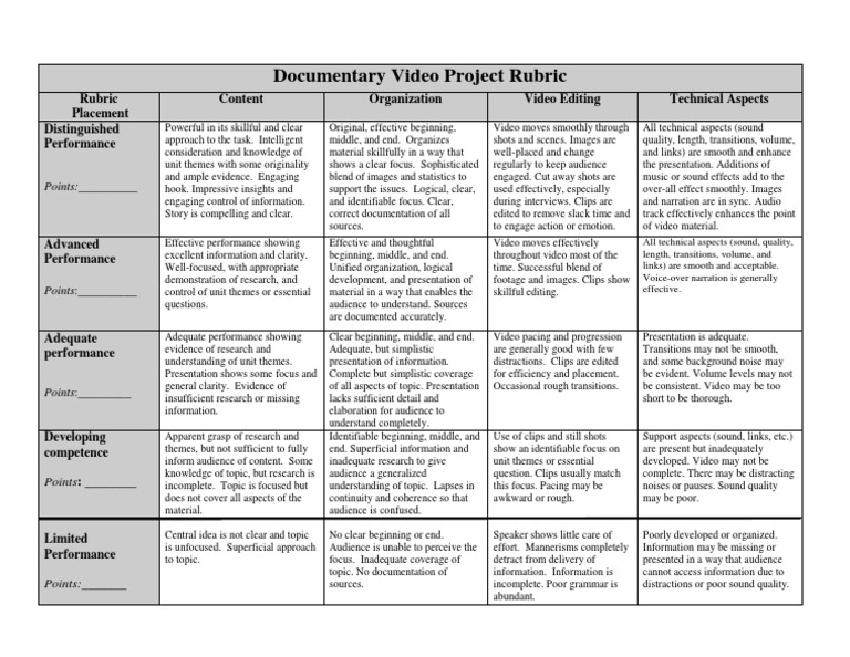 Imovie Rubric Or Video Project Rubric Rubrics For Projects Rubrics Video Projection